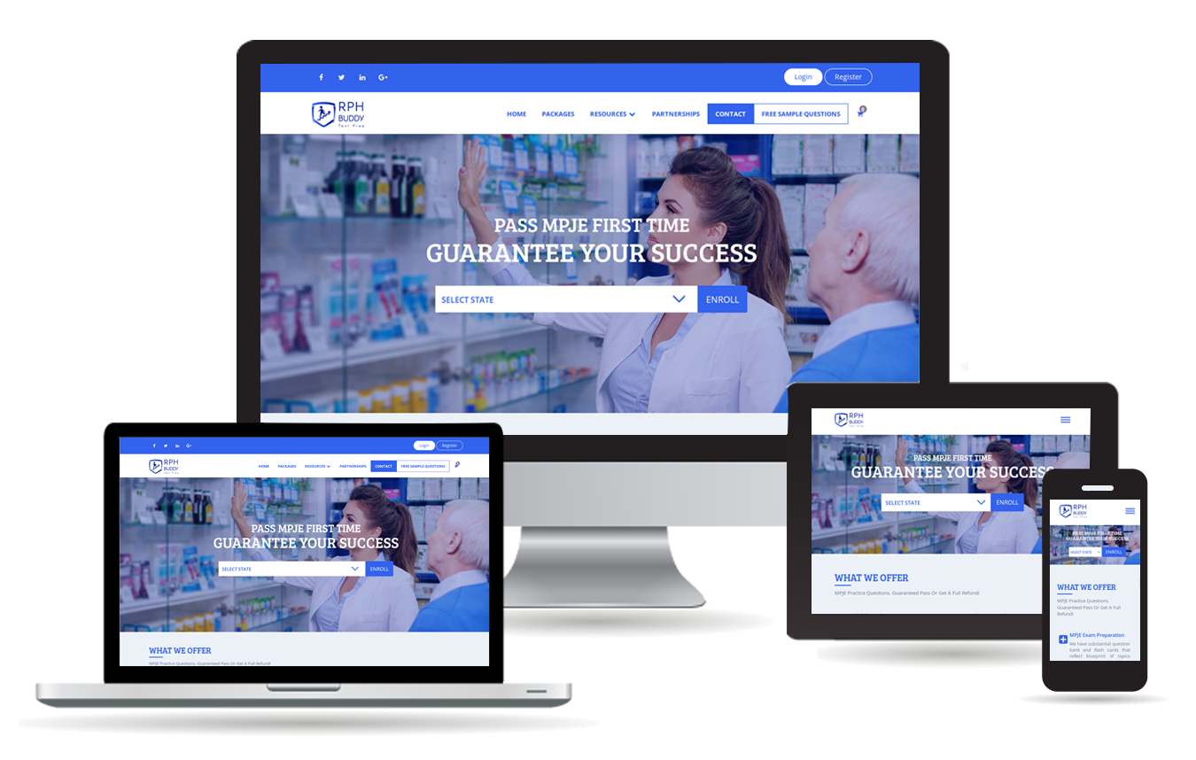 Take the next step to mastering MPJE and prepare with the name you can trust. Know you are ready for MPJE and pass the MPJE exam with confidence. We are very confident that our content will enhance confidence levels and improve logical thinking. Our experts are passionate about creating practice questions that match the style and difficulty level seen on the MPJE Blueprint. Our online platform is very user friendly, sleek, and easy to navigate. Email us at support@rphbuddy.com or call us at 772-361-1609.